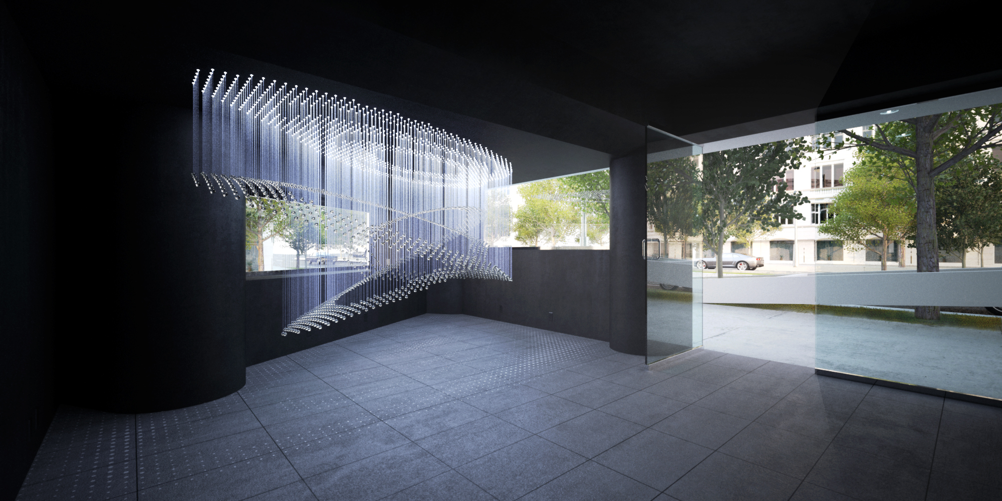 Suspended Space describes topologically transformational processes derived from proximity between walls-windows-users, introducing a discontinuous reality, invisible.