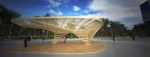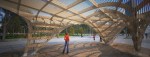 In response to a reusable materiality, Historical Weave articulates Bejuco and Mexican pine wood. The main and the secondary structures are digitally fabricated (CNC – digital pattern) and assembled on site, 7km of bejuco will be woven by local craftsmen on site while public is encouraged to participate on the development of the pavilion.