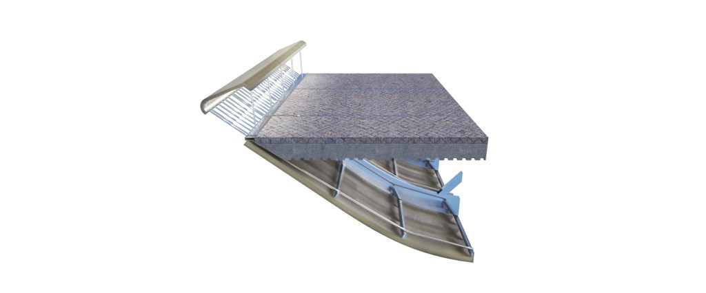 From five pedestrian bridge typologies from several existing an average an overlap of forms results on a single arch, long span typology with no decoration, however it is explored a profile where the user is closer to the water, transforming regular users from witnesses of the event to active participants, considering the event the act of transit, interaction and connection over a body of water.